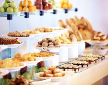 Assortiment d’entrées et de plats, planches de fromages – charcuterie et assortiment de desserts, vaisselle et softs plus pain peuvent être inclus dans vos formules.